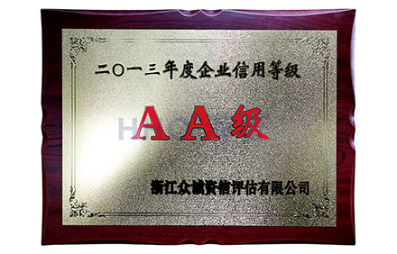 二0一三年度企業(yè)信用等級(jí)AA級(jí)